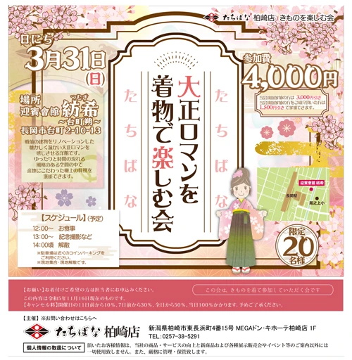 | イベント名 | 【柏崎】大正ロマンを着物で楽しむ会 |