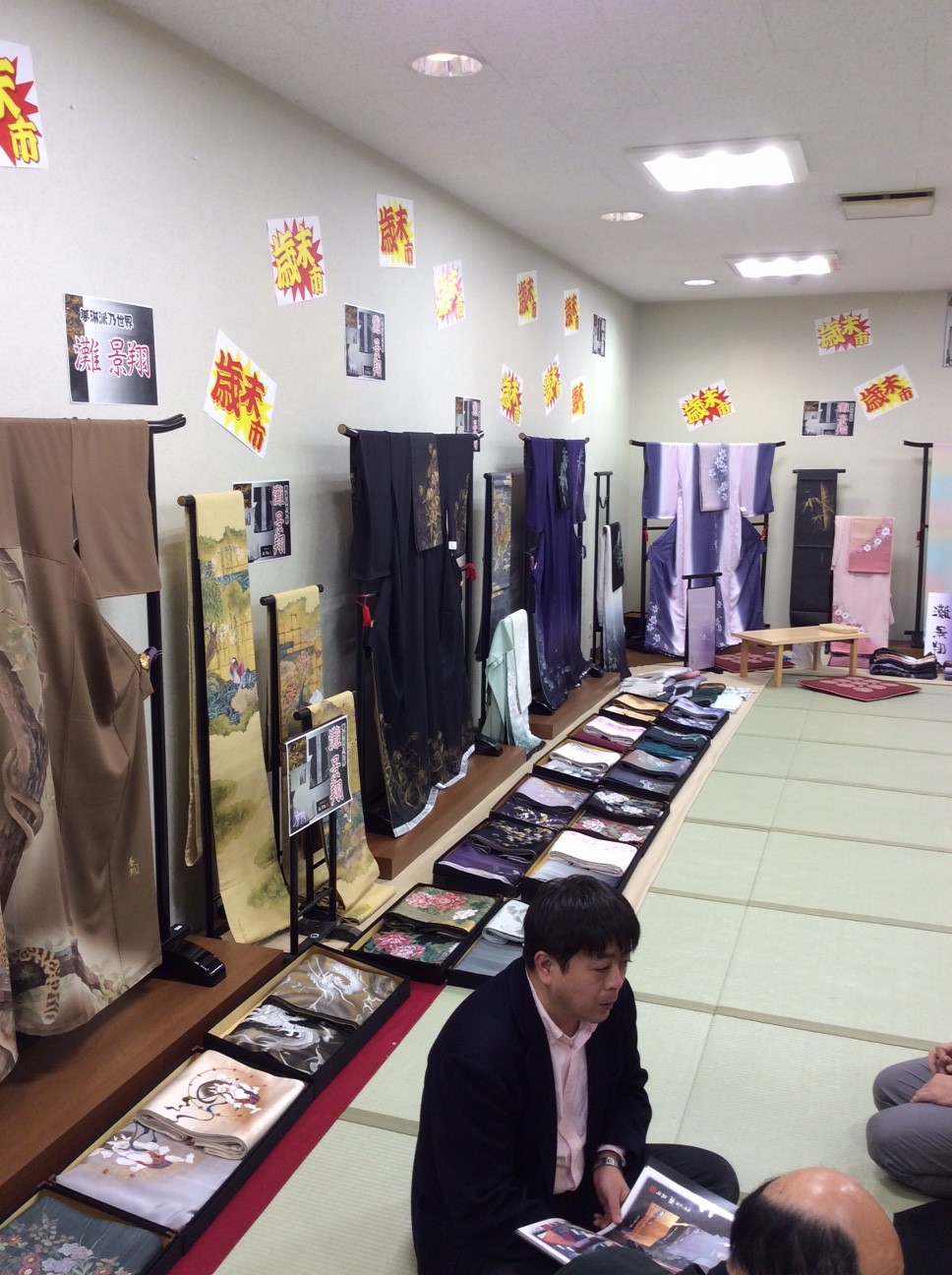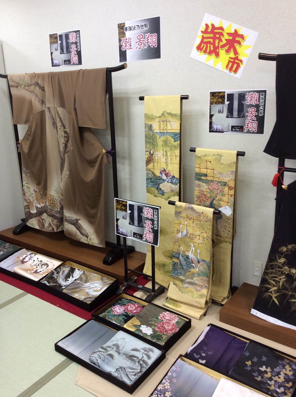 写真は会場風景です。今回は全国でも大人気の若手作家、灘景翔先生の作品を展示しております。楽しい売り出しですので皆様どうぞお出かけくださいませ(^o^)