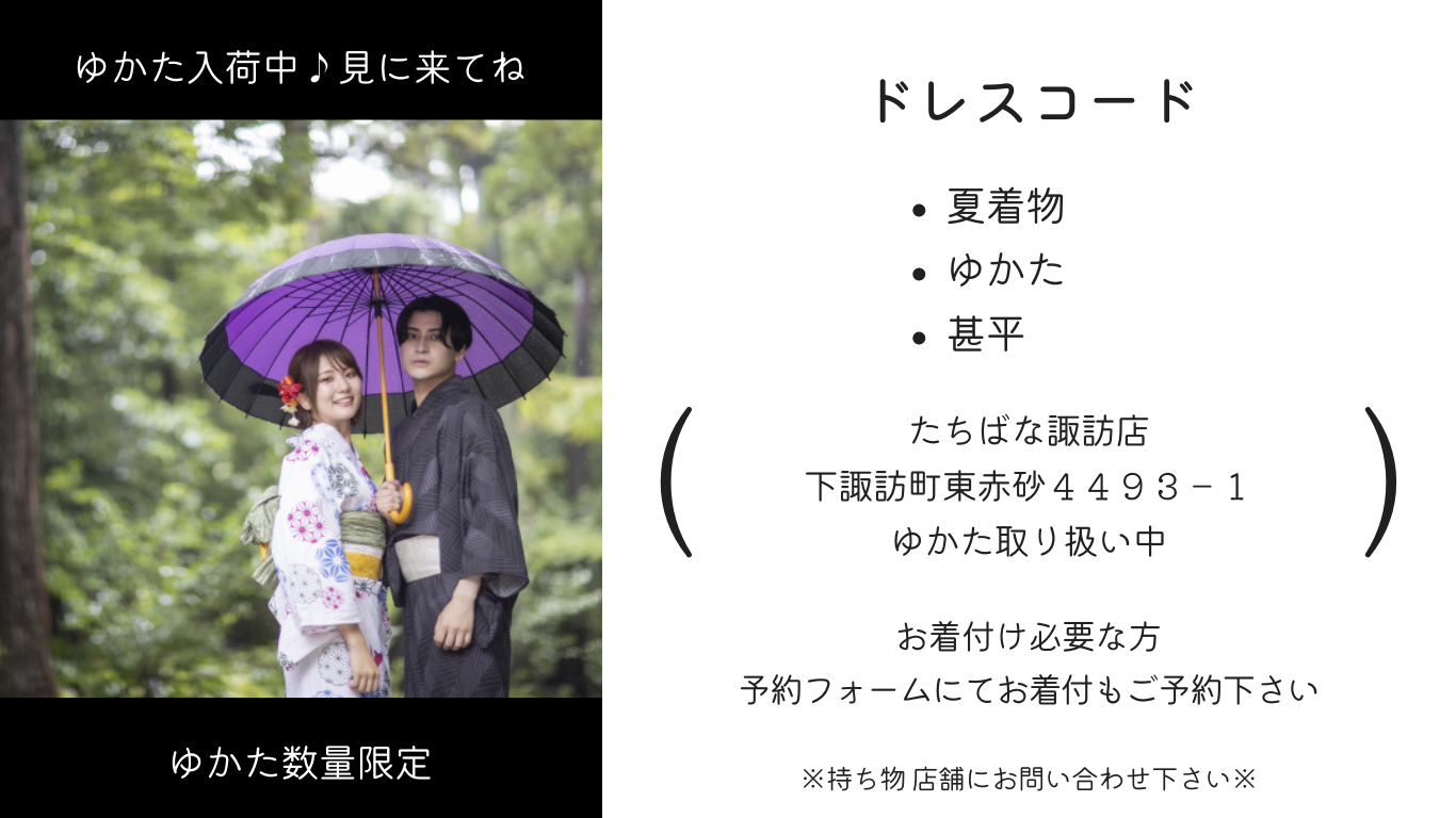 たちばな諏訪店の浴衣をご覧下さい。