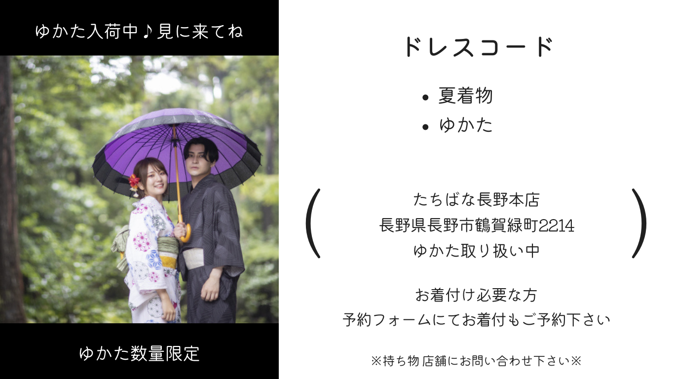 イベントの予約をしたら、ゆかたを見に たちばな長野本店へGo!