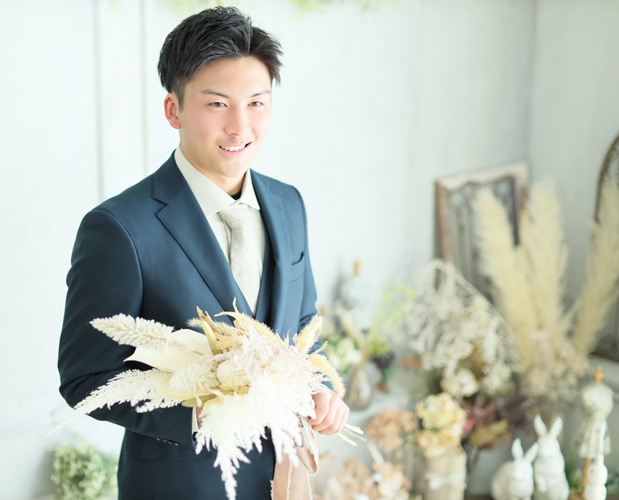 「成人式当日はスーツで出席する」男性向けの前撮りプランを取り扱っているので、それを選べばOKです。