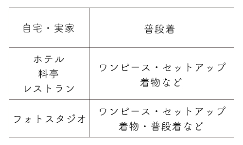 ちなみに百日祝いの場所による服装などはこちらの表をご覧下さい♪