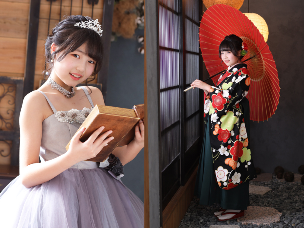 なかなか写真撮るのが難しくなってくる年頃ではありますが、ハーフ成人の10歳、十三参りの13歳になったら、親の方から「お祝いついでに着物やドレスで写真撮ってみない?」と子供に提案してあげて下さい。