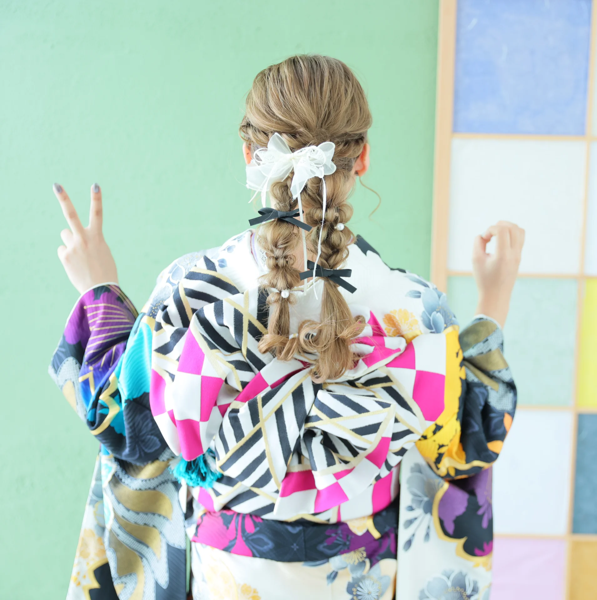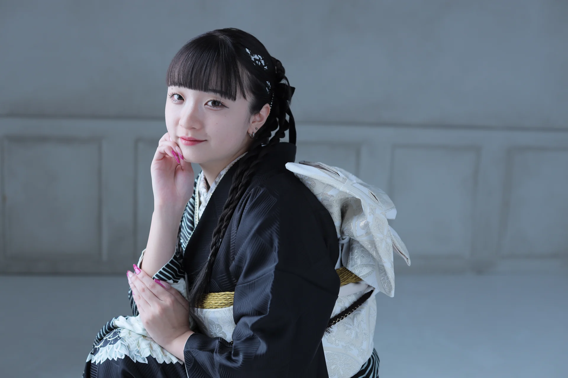 こちらの写真は帯の色と髪色を合わせています!