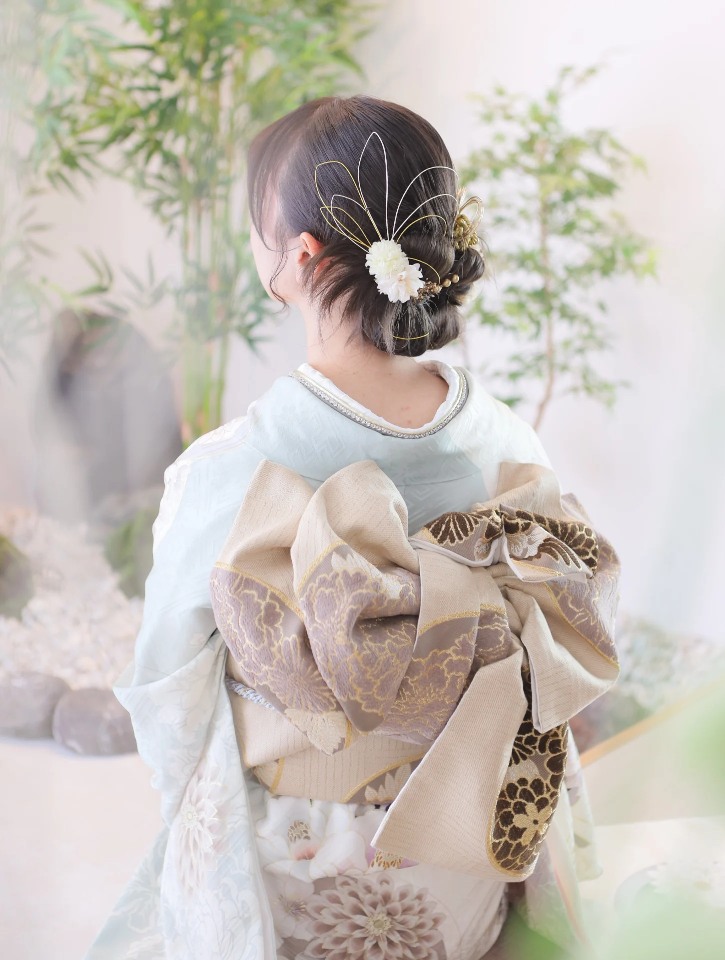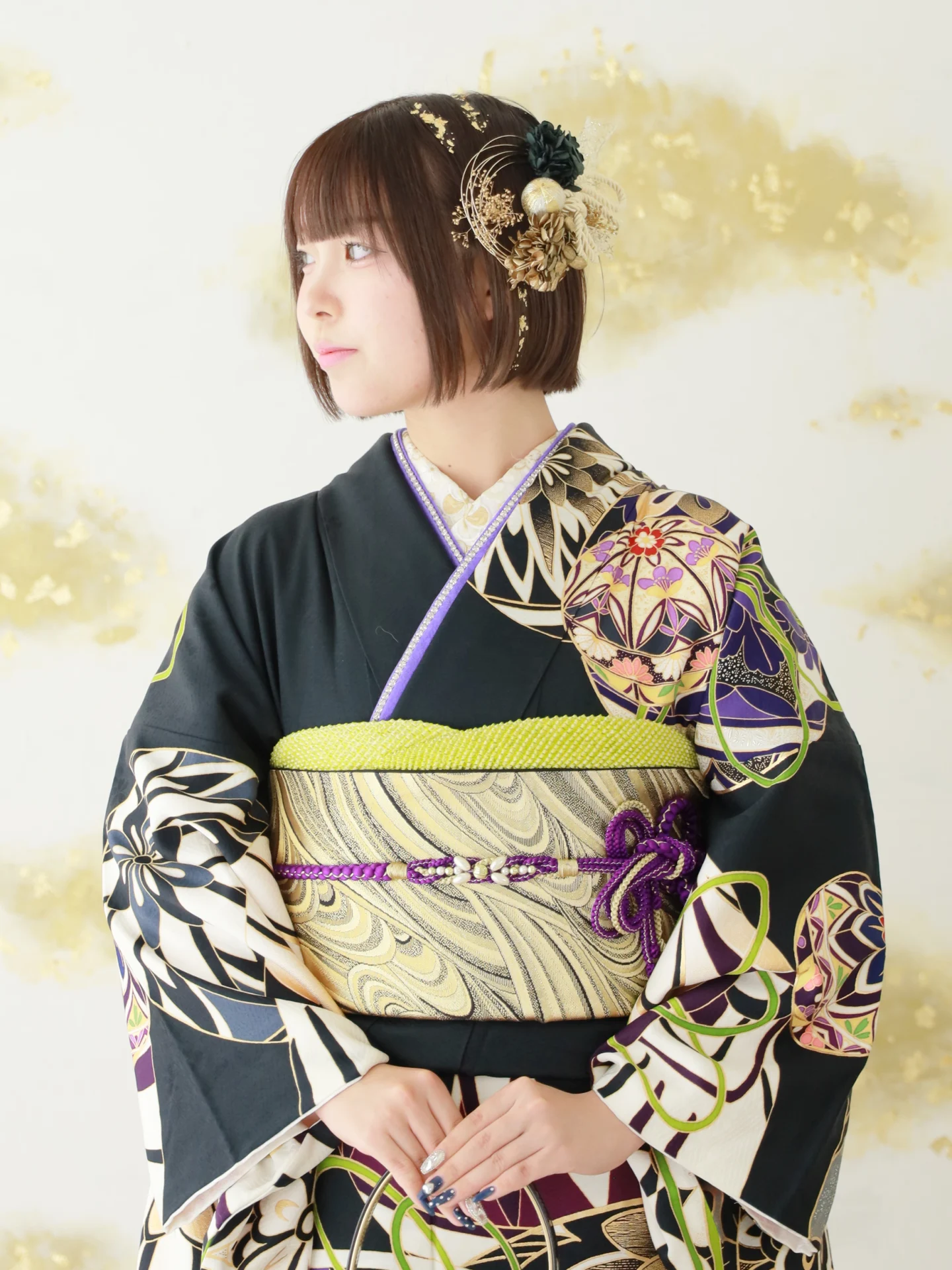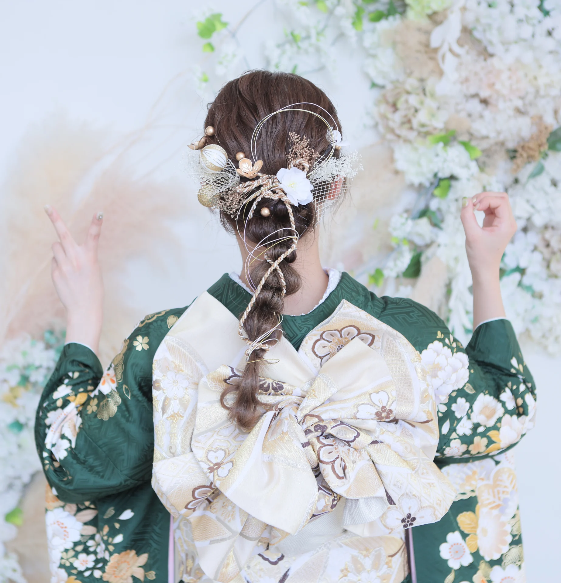 金箔をポイントで入れてバランスをとっており、振袖のデザインと合わせて和美人な雰囲気がとてもgood!な髪型です!