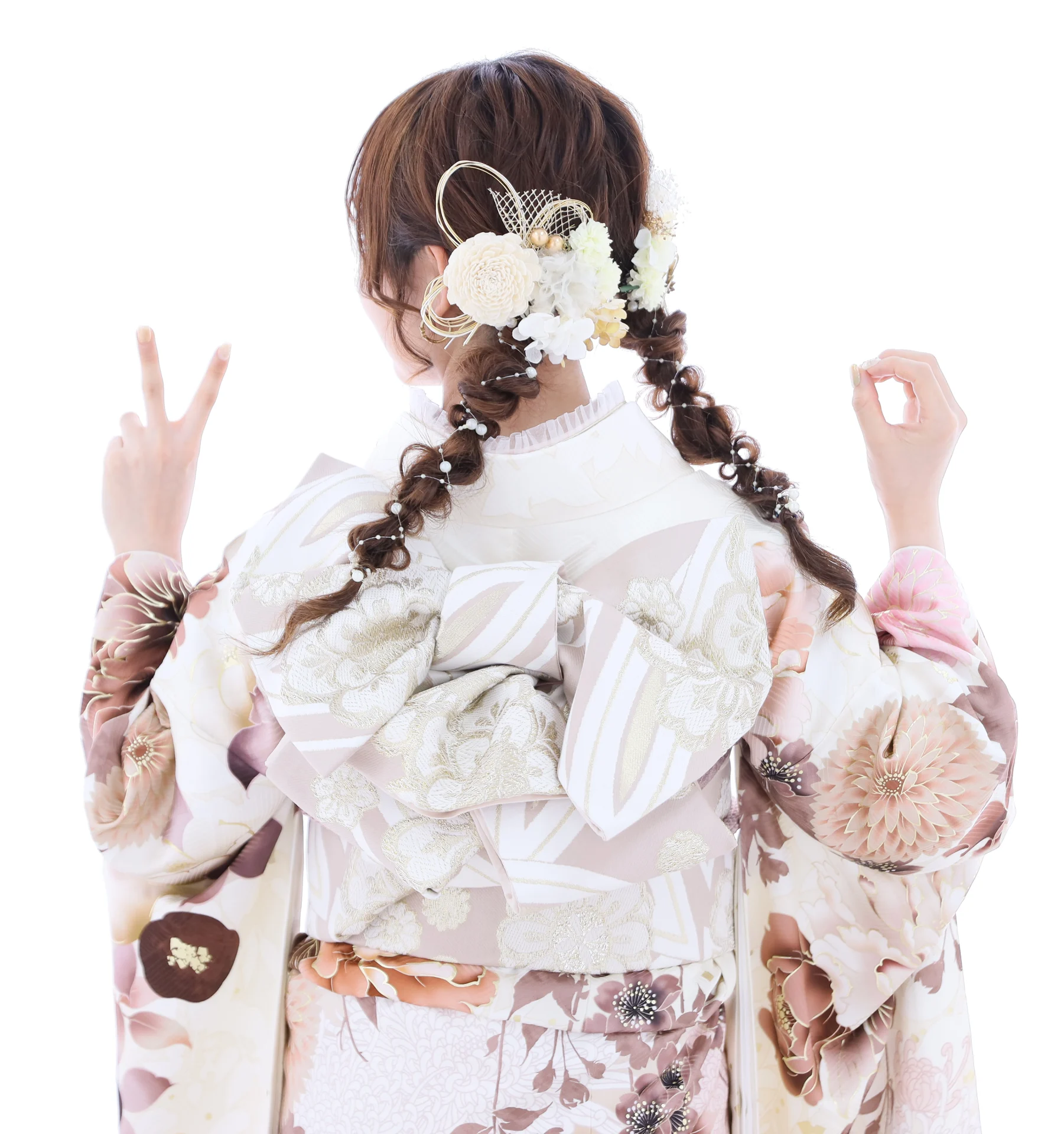 それによって普通のローツインとひとあじ違った、振袖に合った華やかな髪型になっています!