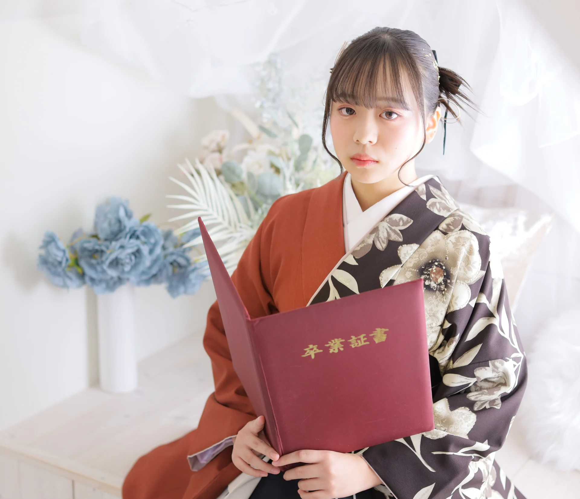 卒業式は親子一緒に着物で写真に写ることのできるチャンスです。