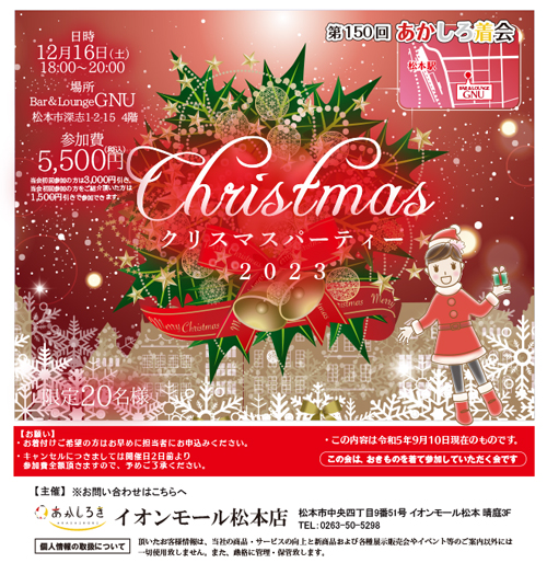 | イベント名 | 【イオン松本】クリスマスパーティー2023 |