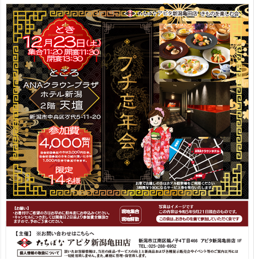 | 開催場所 | ANAクラウンプラザホテル新潟 2階 天壇 |