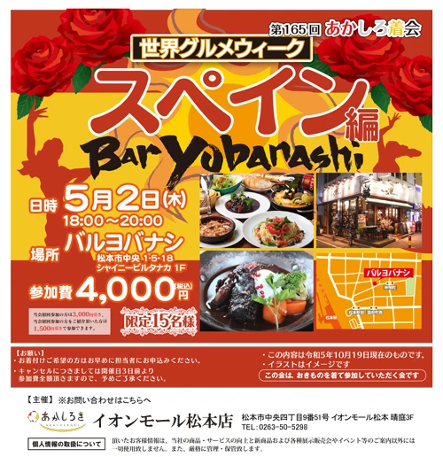 | イベント名 | 【イオン松本】世界グルメウィーク スペイン編 |
