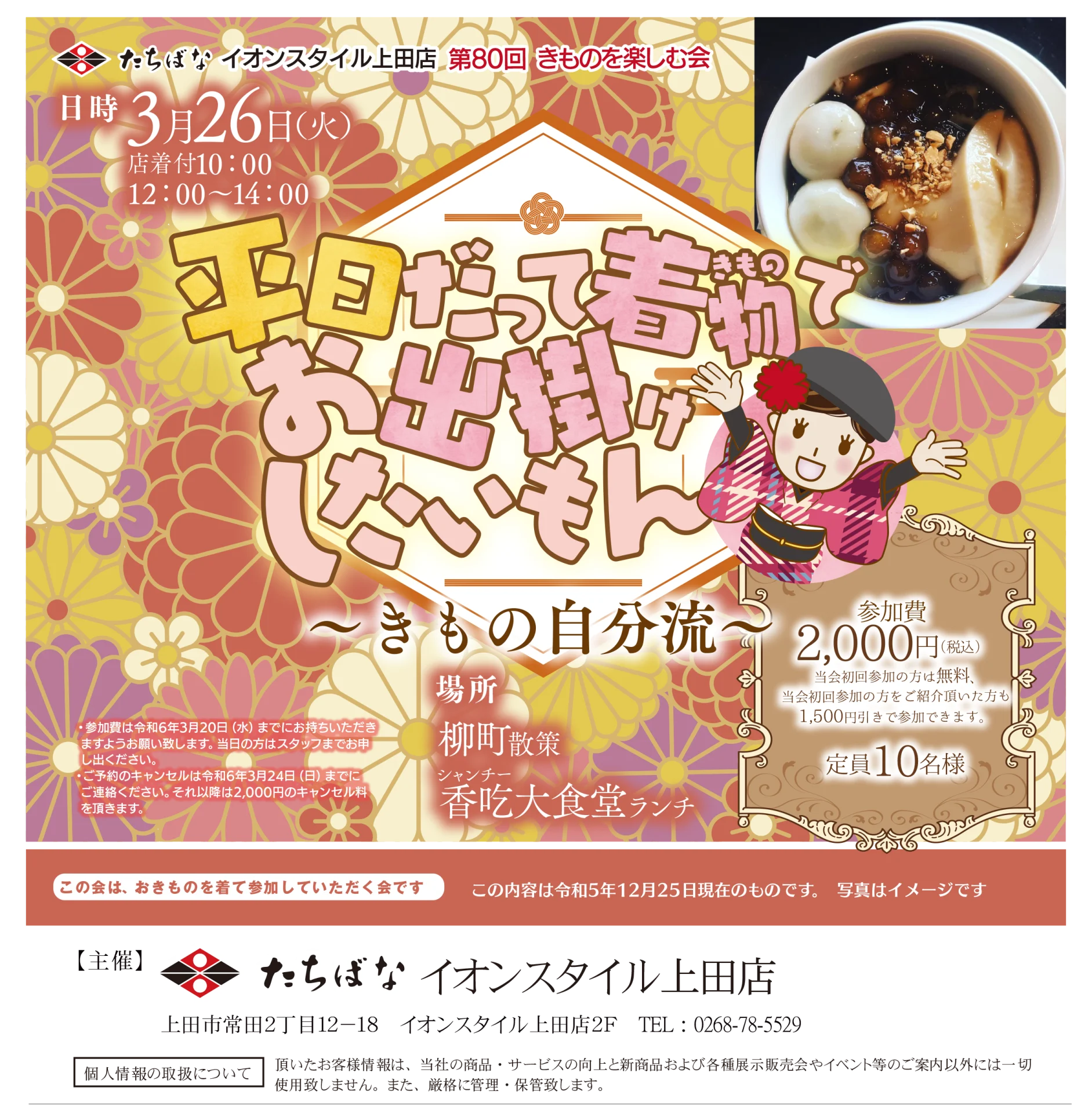 | イベント名 | 【イオン上田】平日だって着物でお出掛けしたいもん ~きもの自分流~ |
