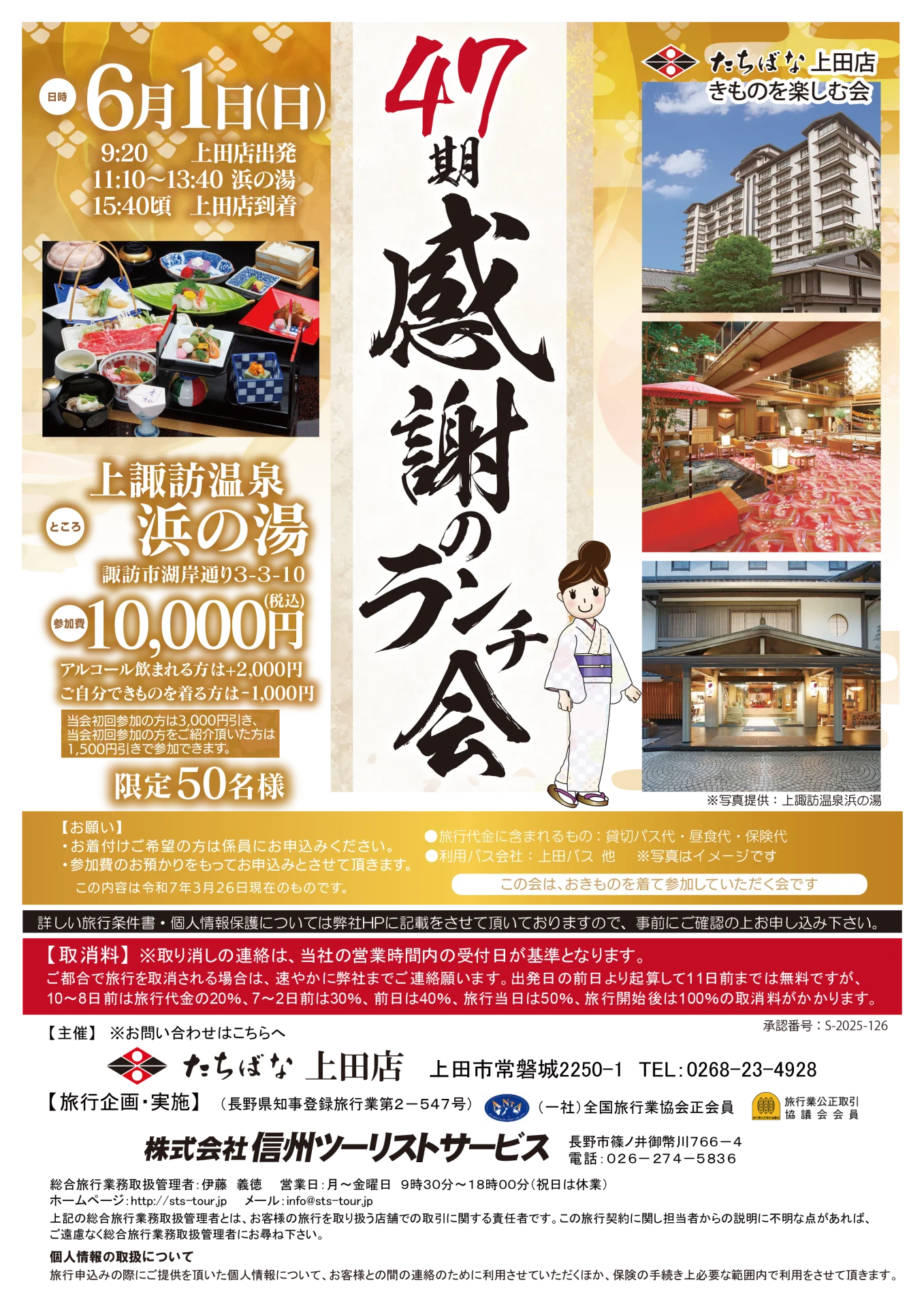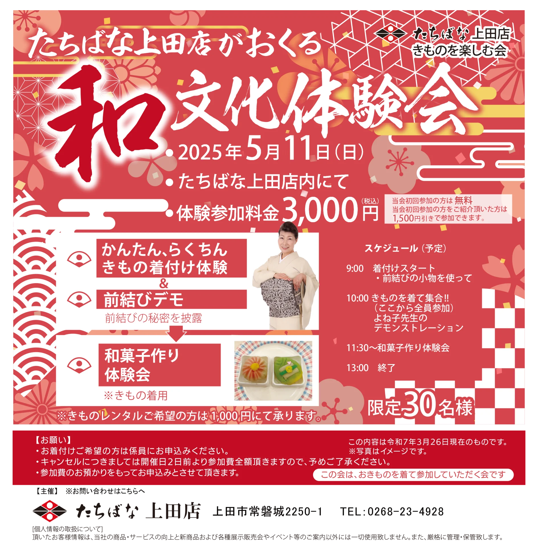 | 開催日時 | 5/30(木) 11:00 柏崎店発 12:00 お食事開始 13:00 散策 14:00 CAFE HAYASHI発 15:00 柏崎店着 |