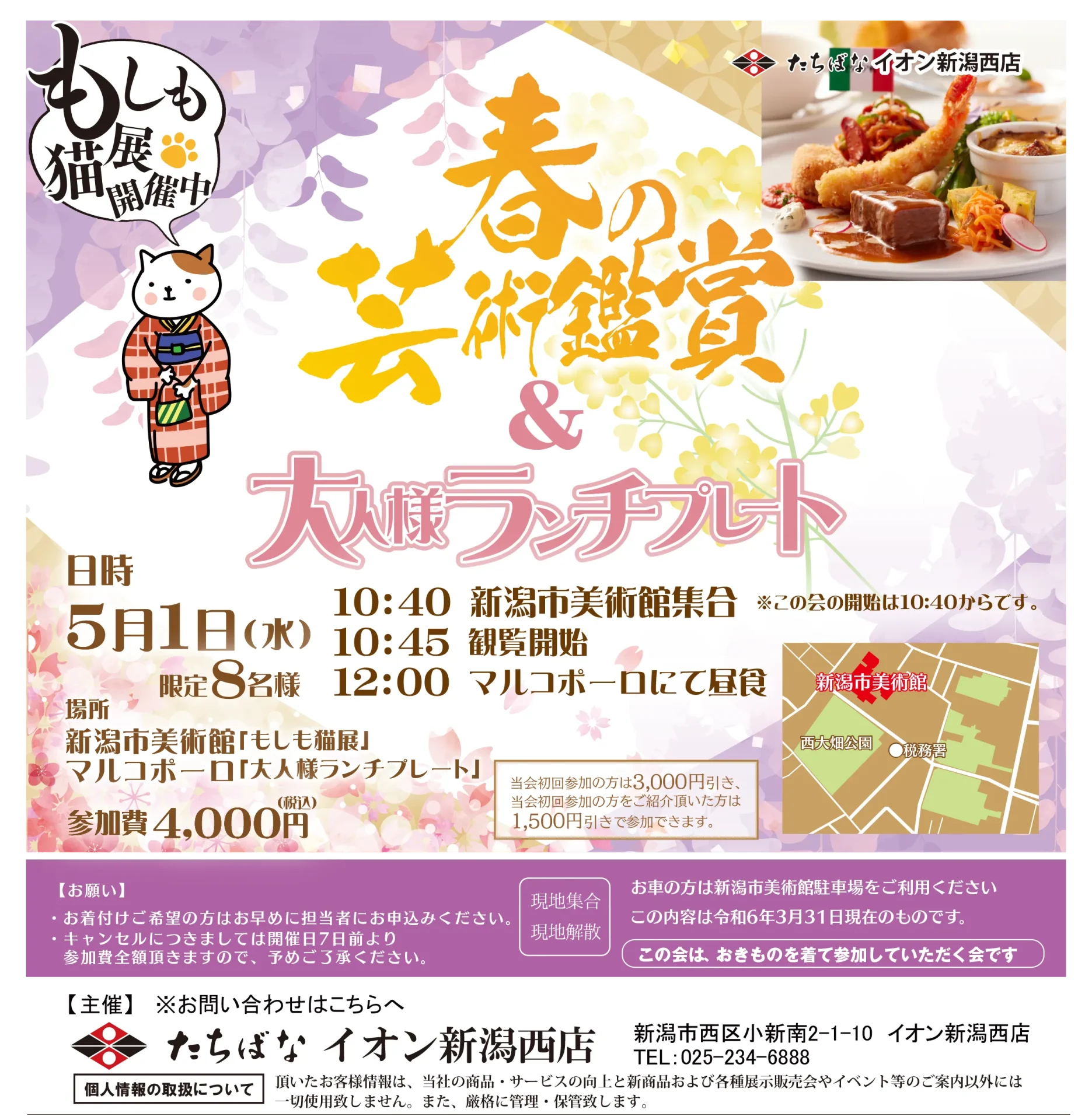 | イベント名 | 【イオン新潟】春の芸術鑑賞&大人様ランチプレート |