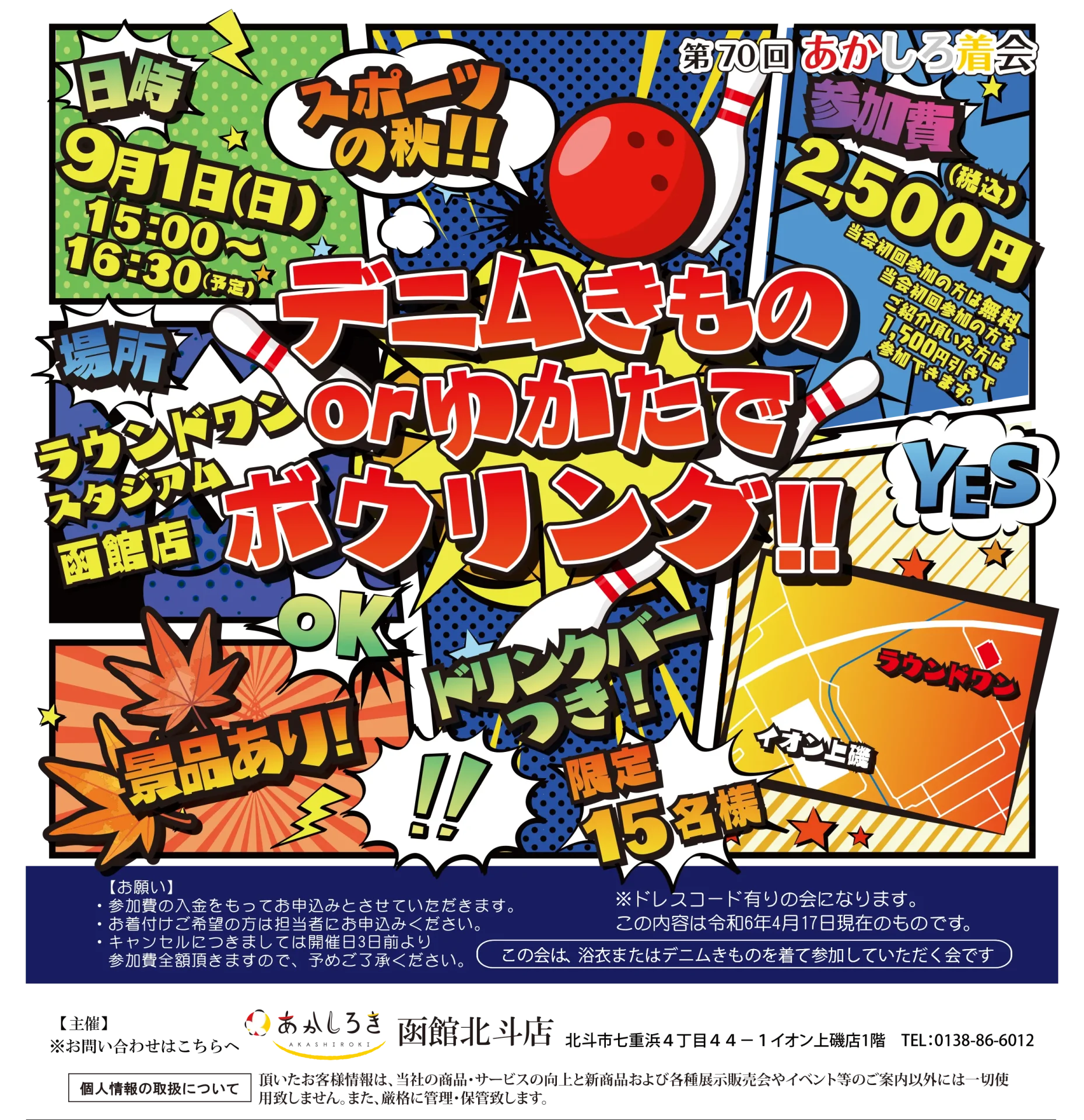| イベント名 | 【函館】デニムきもの or ゆかたでボウリング!! |