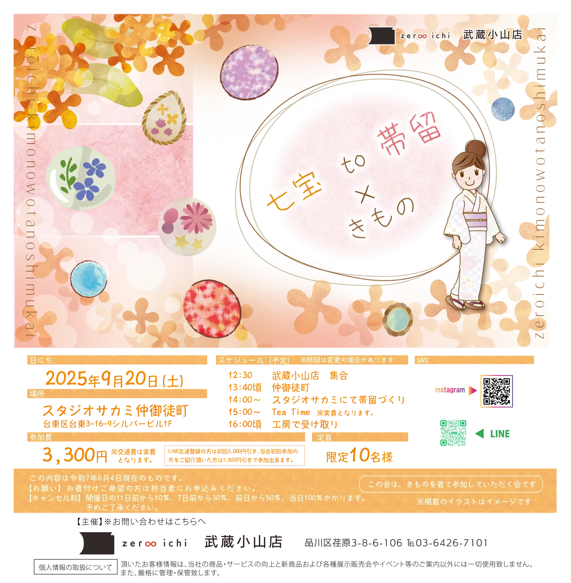 | ゆかたワンコインレッスン | 7/6(土) 14:00~ 7/15(月・祝) 14:00~ 7/20(土) 14:00~ ※詳細はお尋ねください。 |