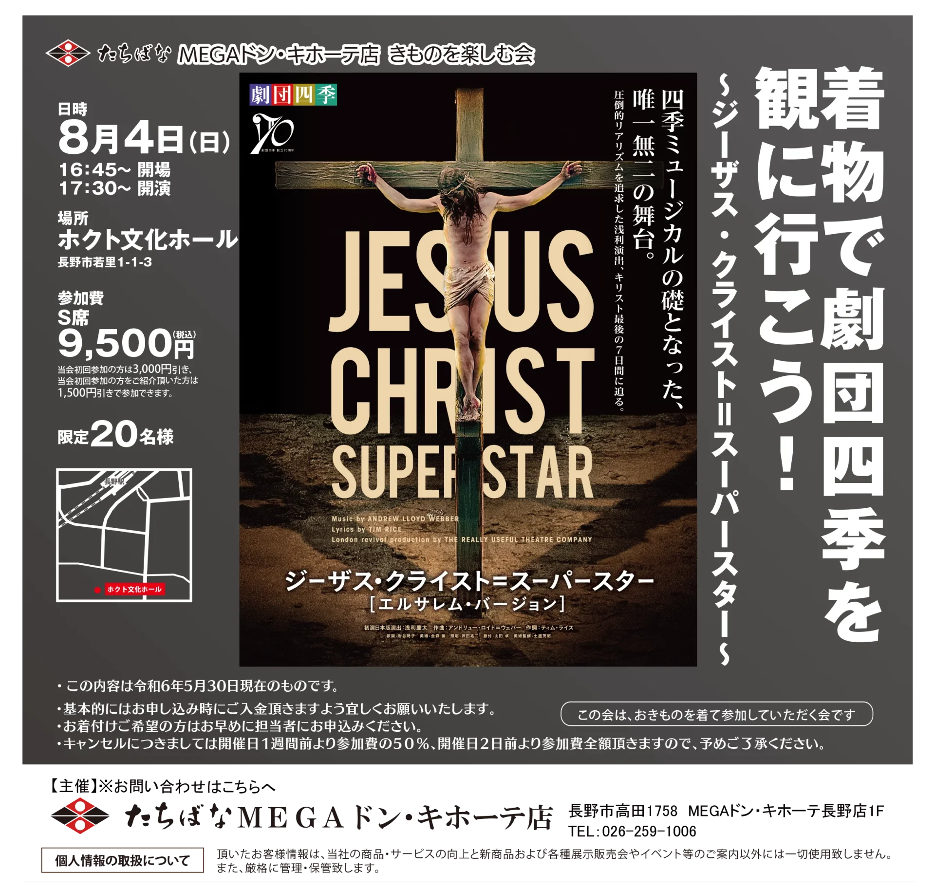 【8/4(日)】着物で劇団四季を観に行こう! ~ジーザス・クライスト=スーパースター~