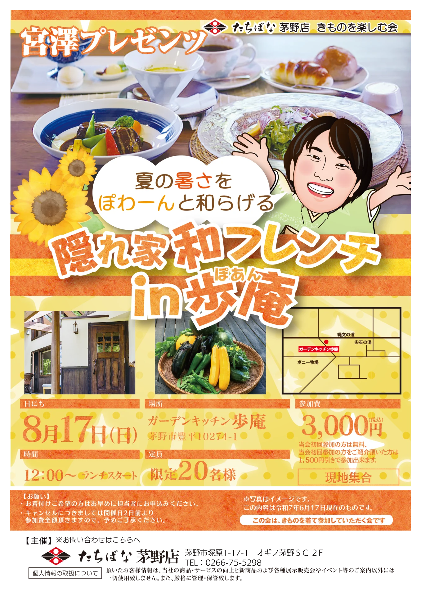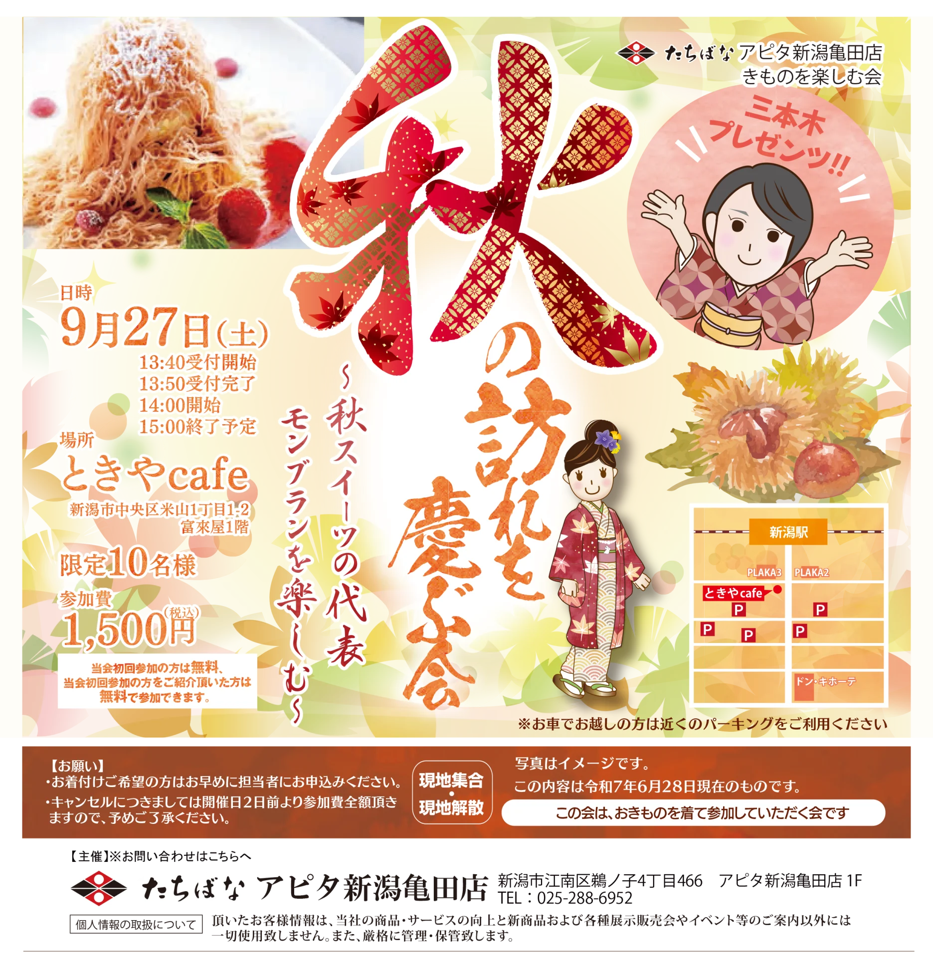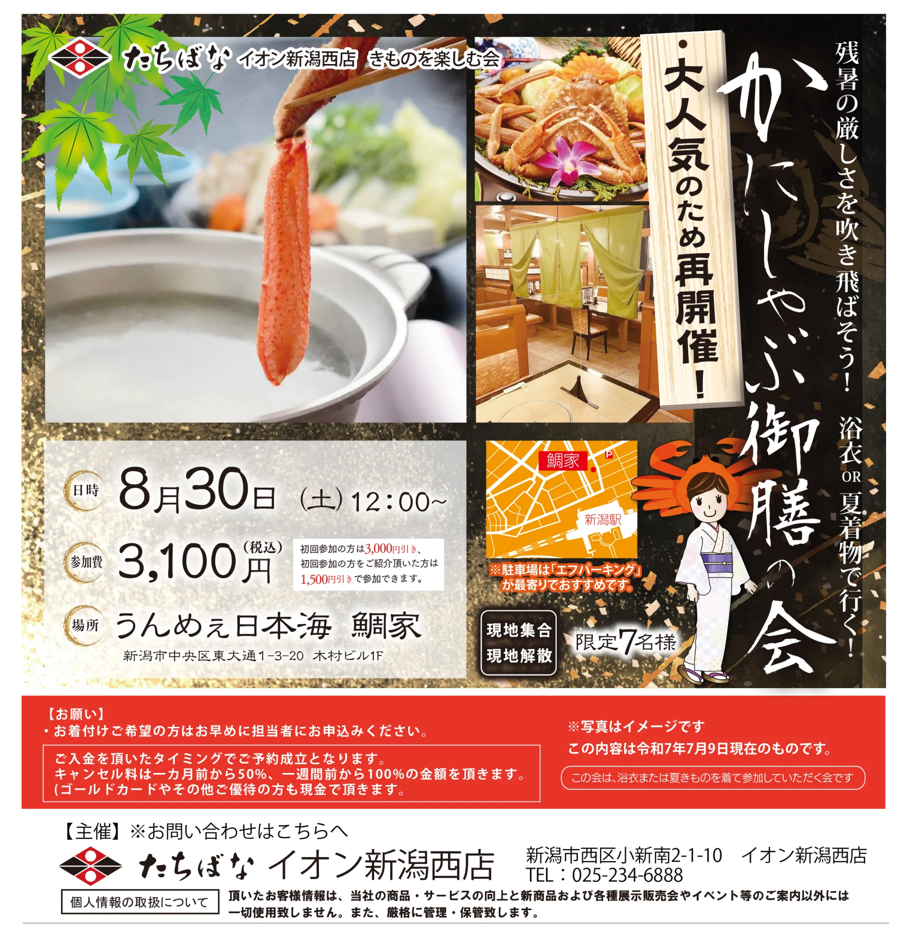 | その他 | ☆当会初回参加の方は無料、当会初回参加の方をご紹介いただいた方は1,500円引きで参加できます! ※この会は、お着物を着て参加していただく会です。 ※お着付をご希望の方はお早めに担当者にお申込みください。 ※写真はイメージです。 ※基本的にはお申込み時にご入金頂きますようよろしくお願いいたします。 ※キャンセルにつきましては開催日1週間前より参加費の50%、開催日2日前より参加費全額頂きますので、予めご了承ください。 |