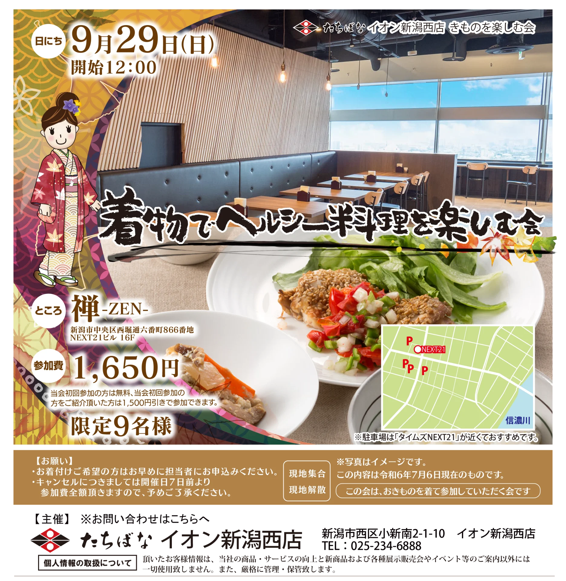 | イベント名 | 【イオン新潟】着物でヘルシーに料理を楽しむ会 |