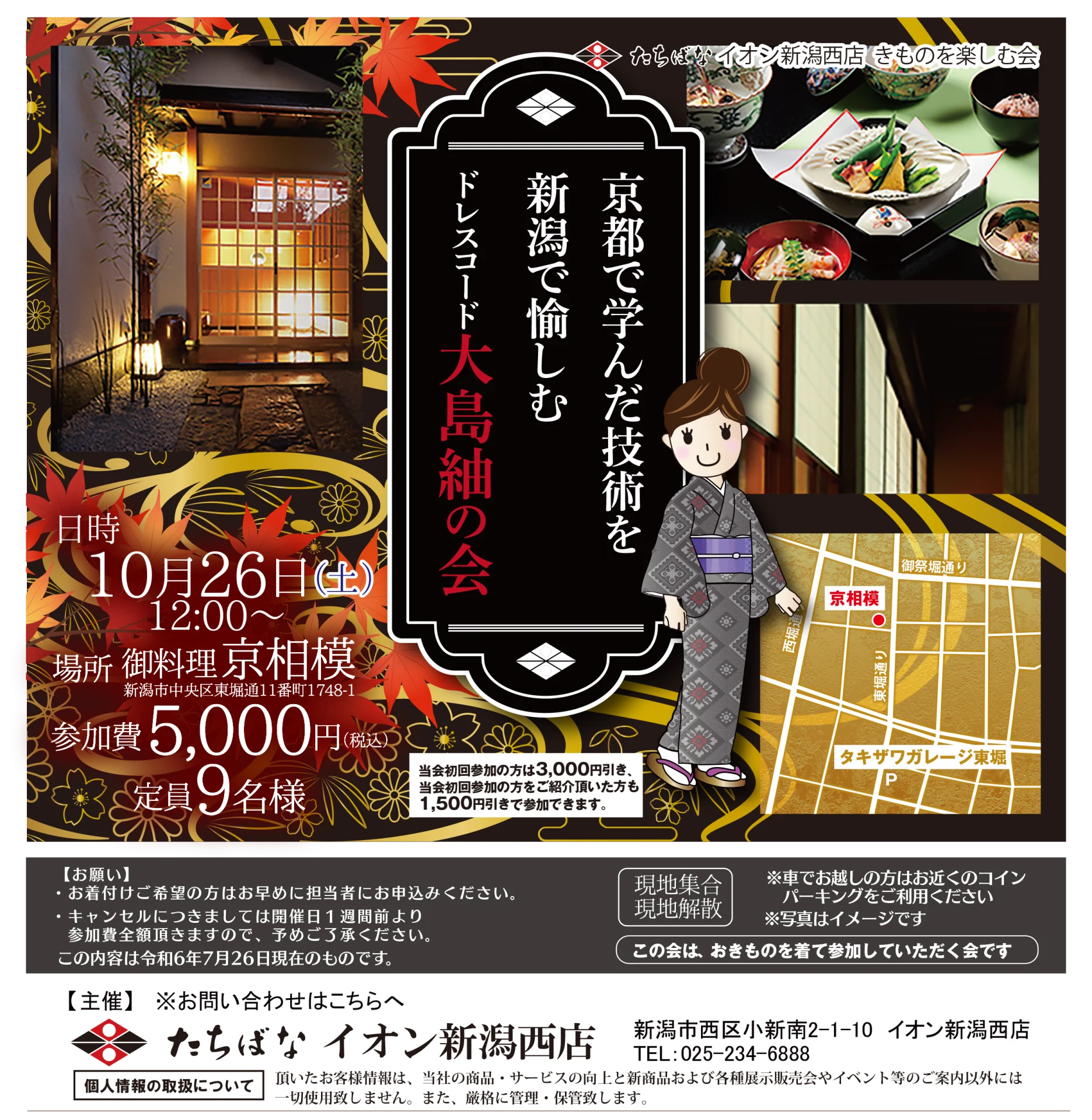 | イベント名 | 【イオン新潟】京都で学んだ技術を新潟で愉しむドレスコード大島紬の会 |