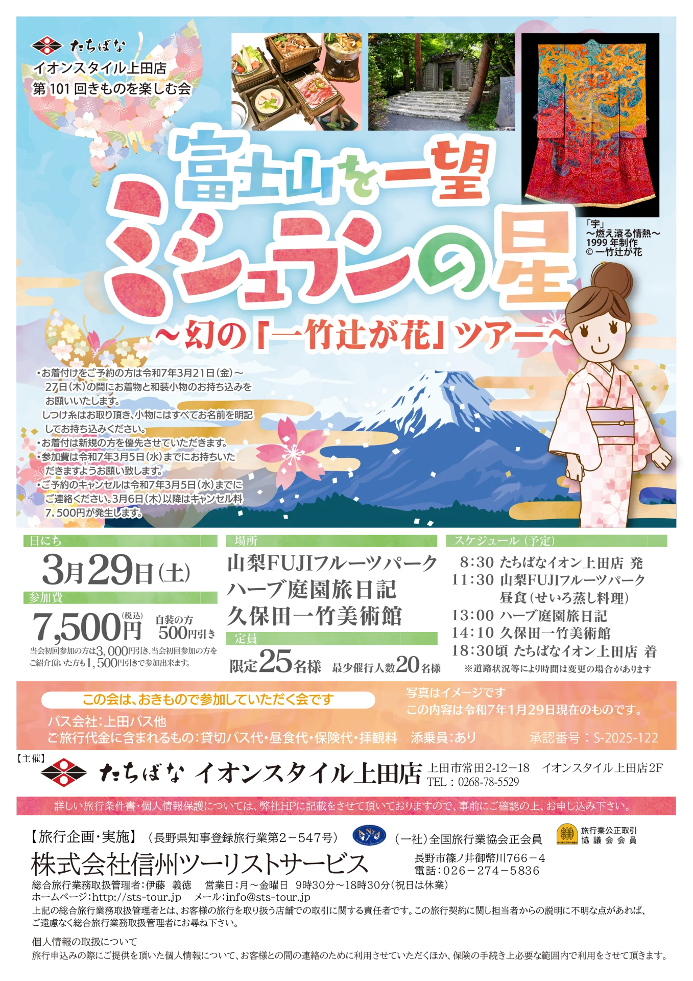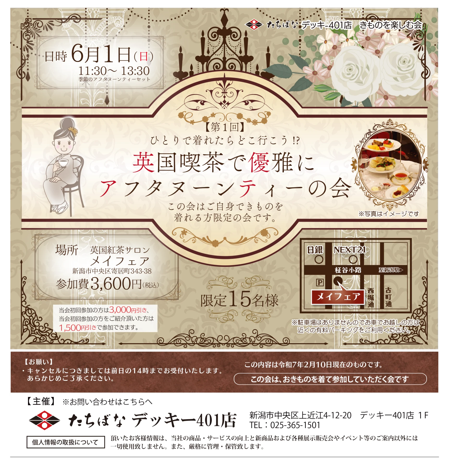 | その他 | ※この会は、お着物を着て参加していただく会です。 ※お着付をご希望の方はお早めに担当者にお申込みください。 ※キャンセルにつきましては開催日2週間前より参加費全額頂きますので、予めご了承ください。 |