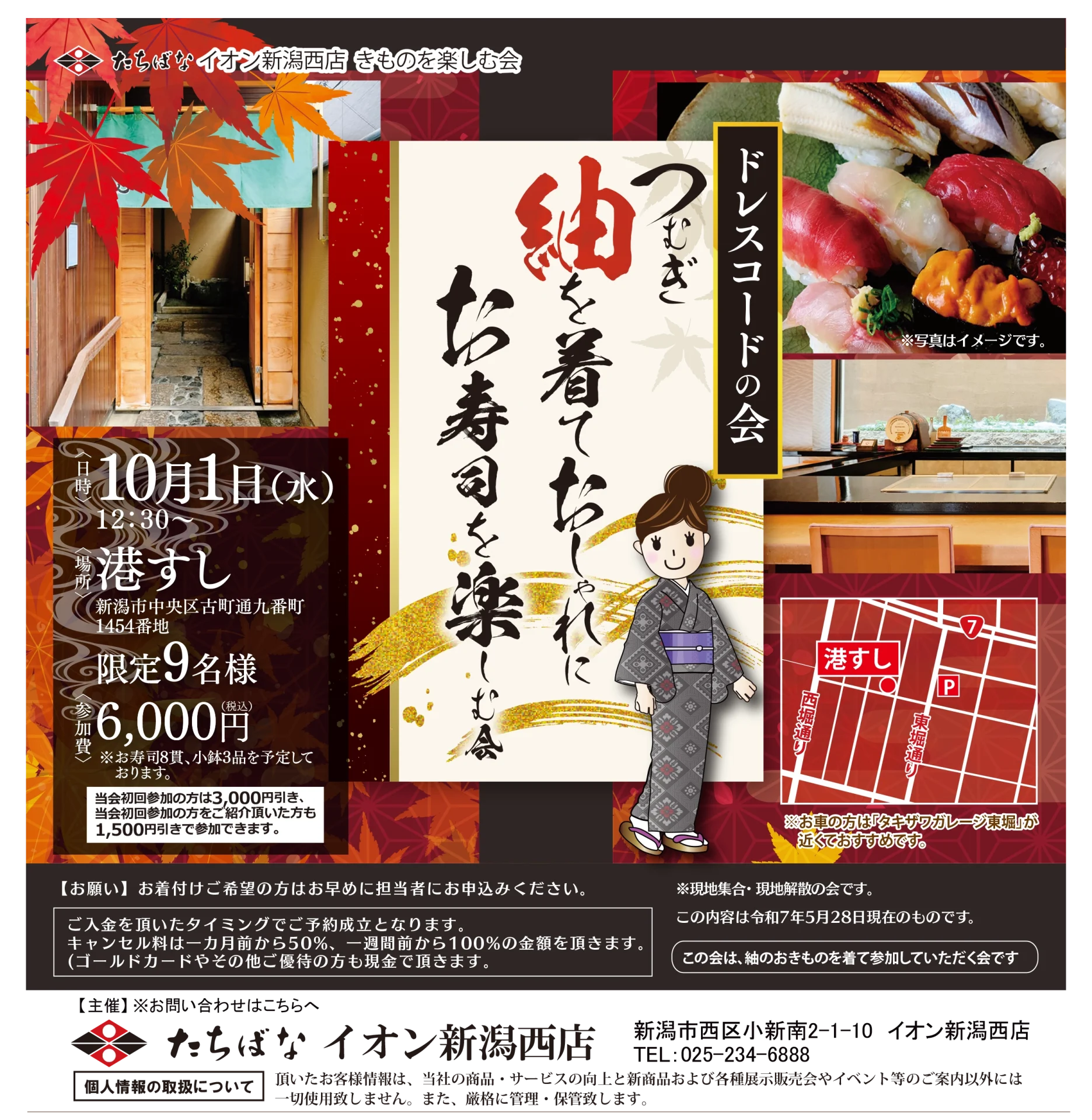 | イベント名 | 【イオン新潟】紬を着ておしゃれにお寿司を楽しむ会 |