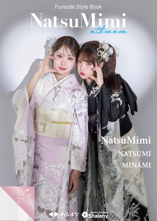 ハイセンスな大人っぽい振袖の魅力が満載!ティーンに大人気のインフルエンサー姉妹なつきちゃん&MINAMIちゃんが着こなす【NatsuMimi(ナツミミ)】の振袖。