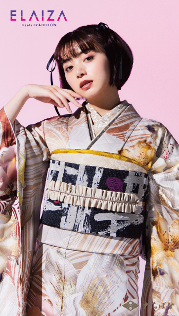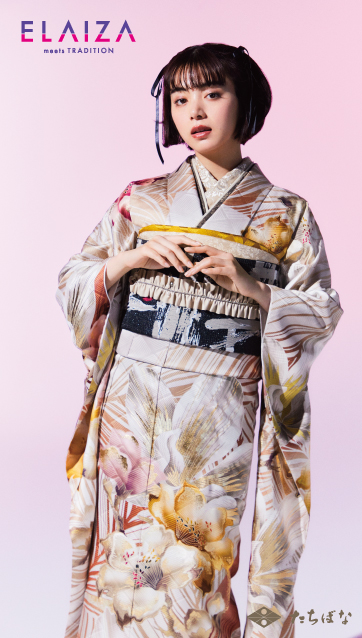 池田エライザ着用の成人式振袖-ベージュ|成人式の新作振袖ご紹介 El-714 MENU