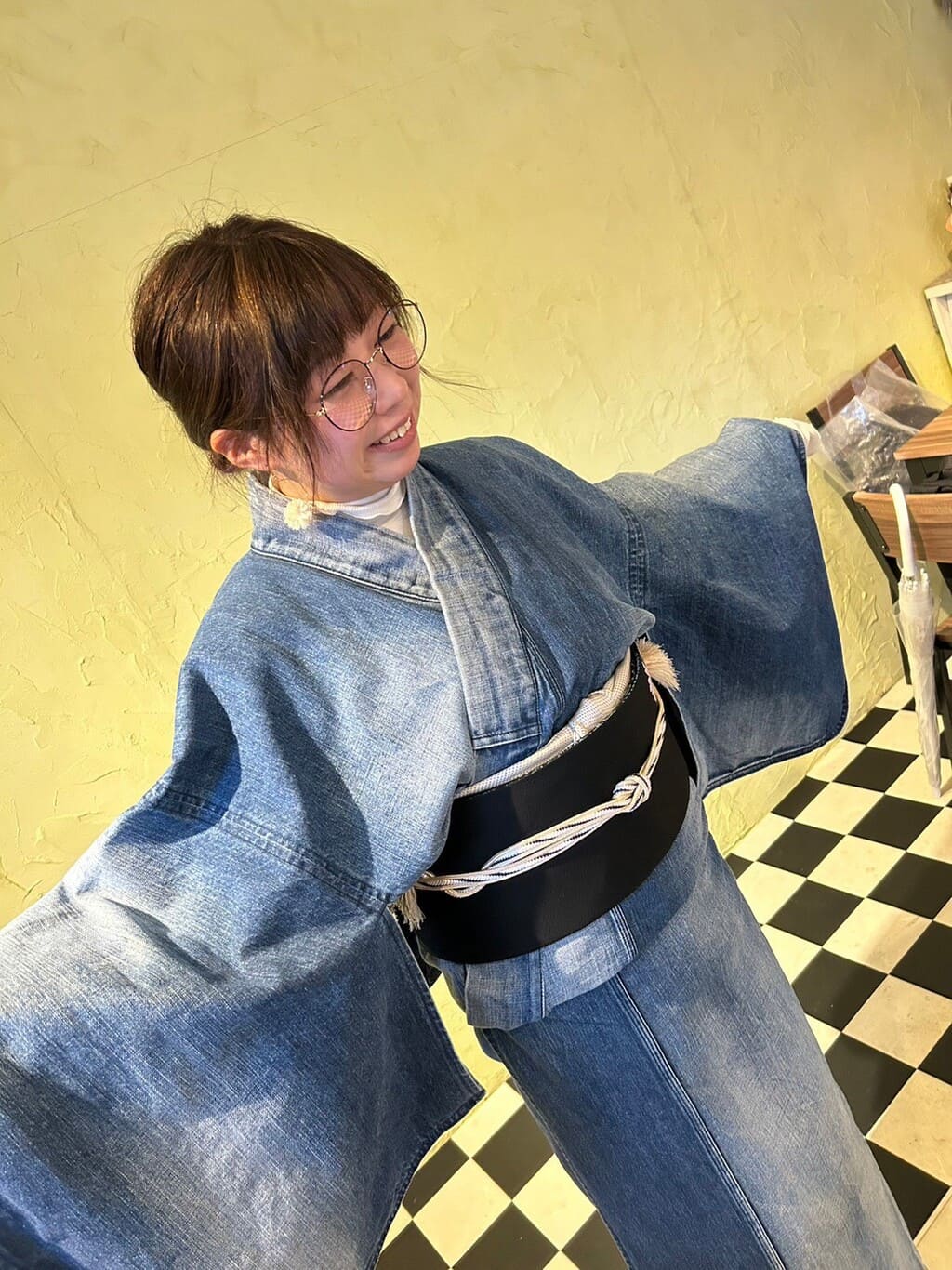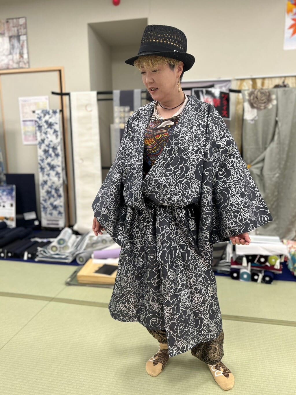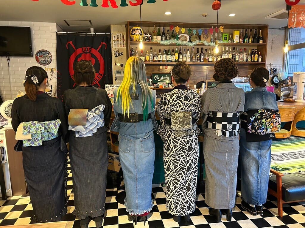 着物をTPOを気にせずもっと気軽に楽しもう♪ ということでデニム着物やカジュアルコーディネートの着物も取り扱い中♪ カジュアルコーデがドレスコードの楽しむ会なども定期的に開催しております。