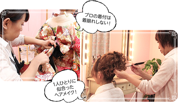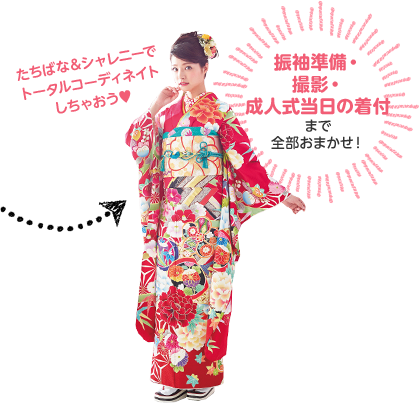 成人式の振袖選びから、お写真・成人式当日のお支度、アフターサービスまで一か所でOK!特典もいっぱいで安心です!