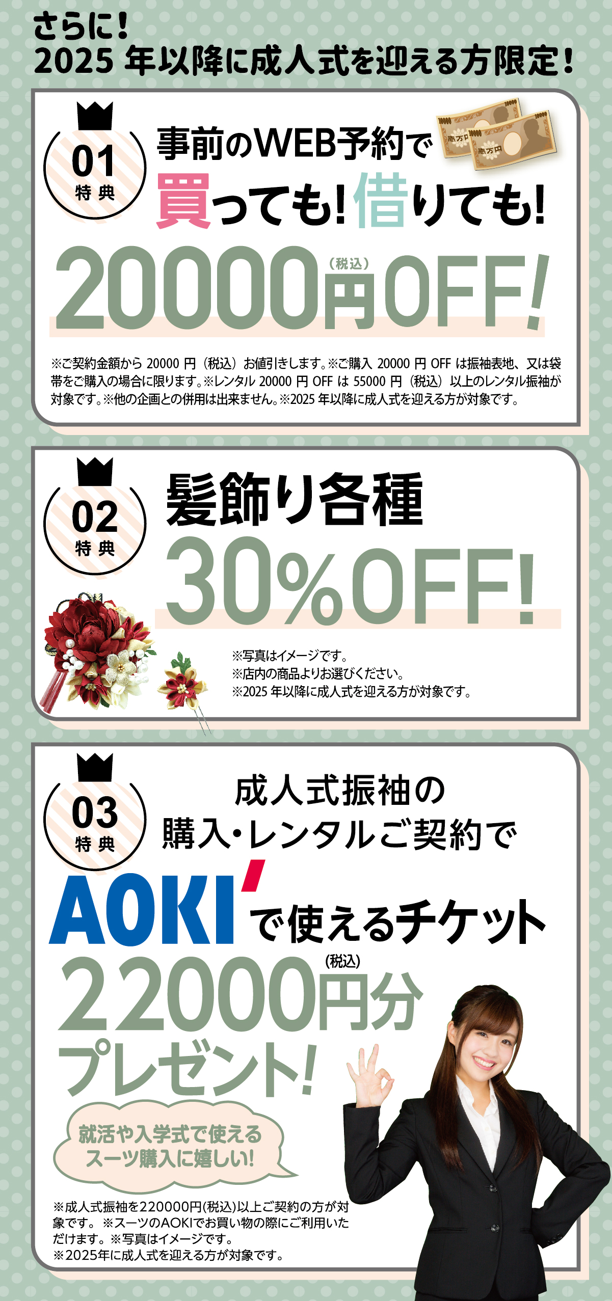 ※220,000円(税込)以上の振袖レンタル・購入・ママフリをご利用の方が対象です