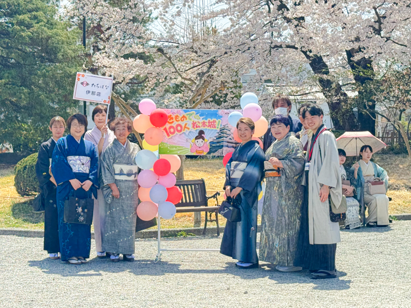 との想いで、4月14日(日) 12:00〜 松本城にて『きもので100人!!松本城!』のイベントを開催しました。