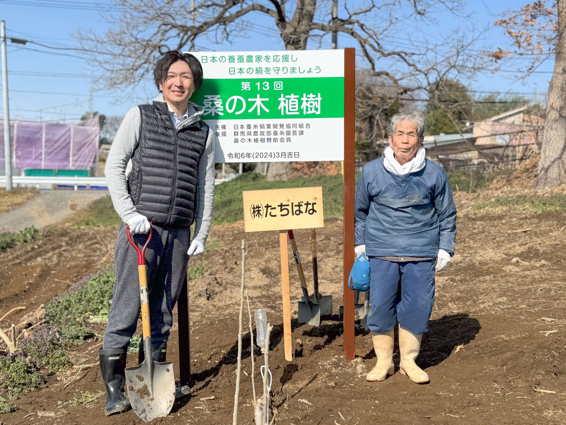 株式会社たちばなは、国内養蚕農家の支援と、きものの原点である日本の絹産業を守ることを目的とした「桑の苗木植樹プロジェクト」に参加しました。