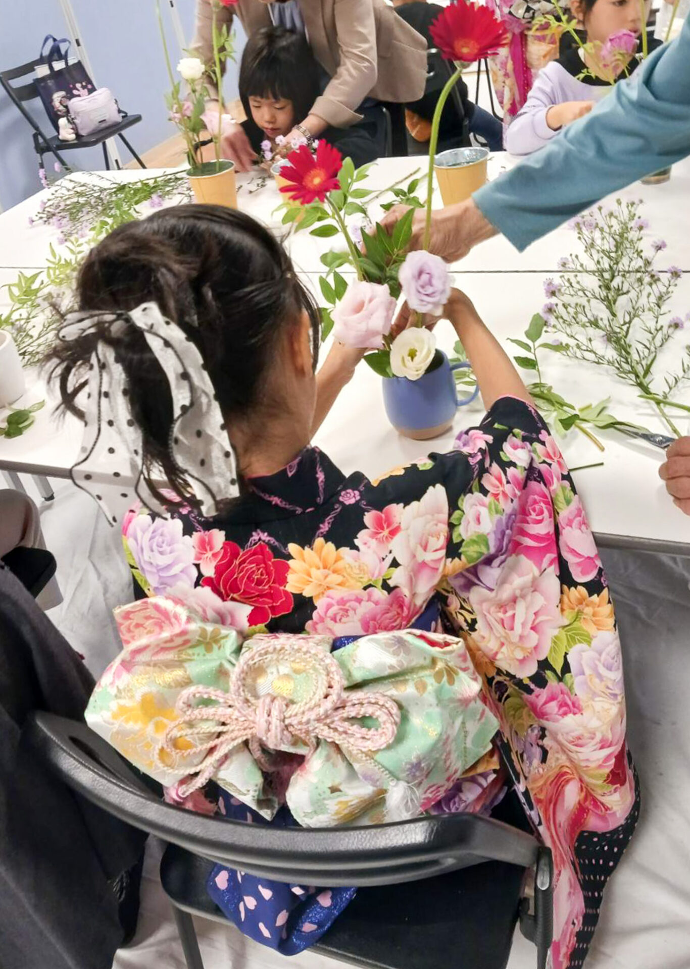 伝統芸能体験会場では、和装のほかにも生け花や日本舞踊など様々な伝統文化の体験ブースが設営され、当日参加をした子供たちも楽しそうに体験をしていました。