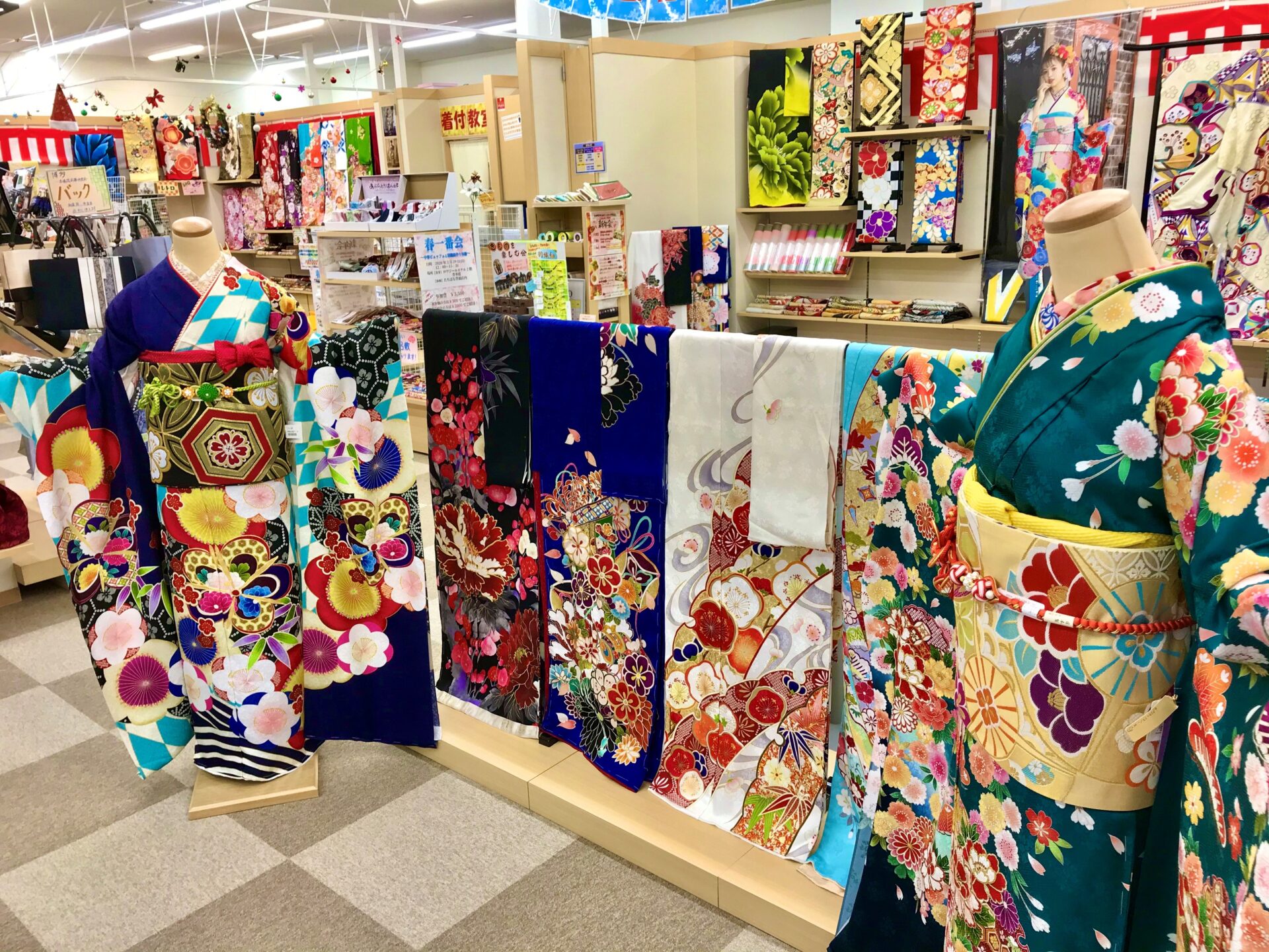 たちばな豊橋店ではいつも以上に振袖コーナーに力を入れています!