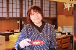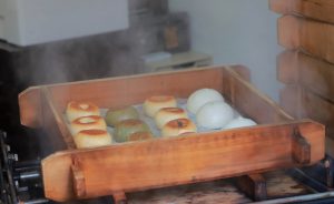 一日足として働いたご褒美に、あつあつのおやきをもらった