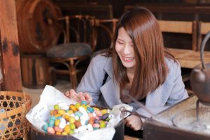愛嬌抜群、おすすめ上手、おいしいお菓子屋のお姉さん