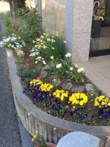 そんな中でも玄関では綺麗なお花が色とりどりに咲いています・・・・