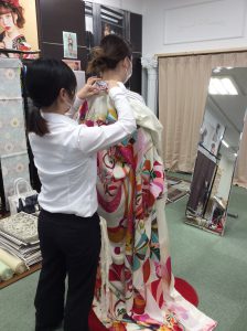 どうやら振袖の着装練習をしていますので様子を伺ってみたいと思います。