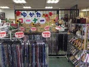 で、本日は店頭の浴衣コーナーが設営できましたので、お知られせいたします