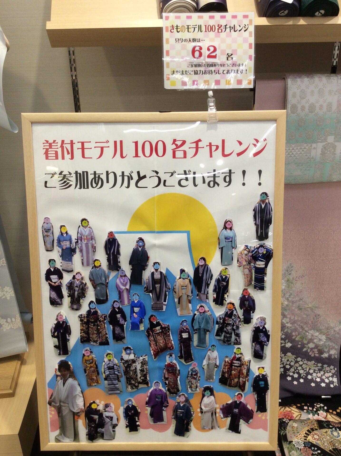 展示会では多数のお客様にお越し頂き、きものモデル100名チャレンジを開催しました。あっという間に62名ものお客様にお着物体験をして頂き、現在も絶賛大募集中です♪