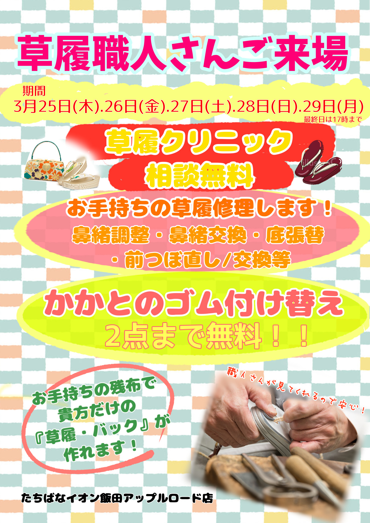 草履職人さんご来場!! |たちばなそよら飯田アップルロード店|