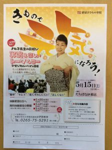→よね子先生に長野からお越しいただく予定でしたが、感染症拡大防止のため、伊那教室講師 西村先生によるデモンストレーションに変更させていただきます。ご了承くださいませ。(5月3日現在)