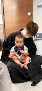 赤ちゃんと戯れる吉田で