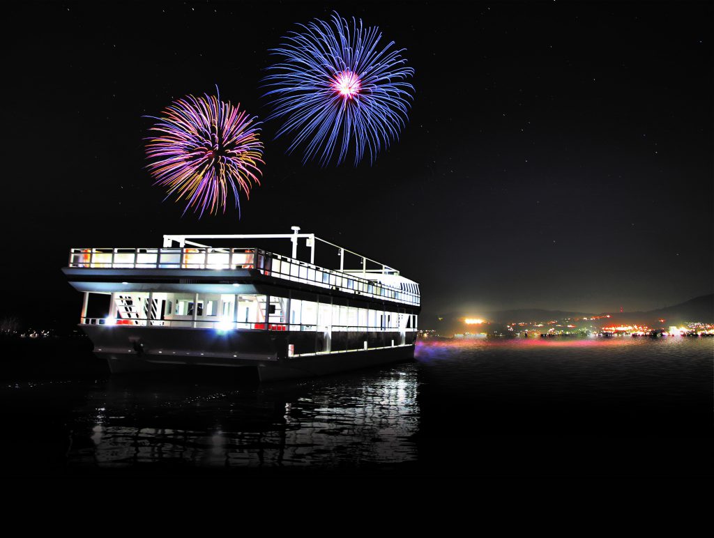 それを昨年就航したばかりの新造船【スワコスターマイン号】に乗って、湖の上で花火を眺められます。