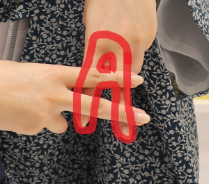 ①左手で下向きピースを作る