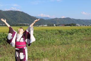 浴衣で