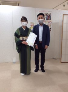 そんな中、本日は前結び着付教室で継続者の表彰がありました