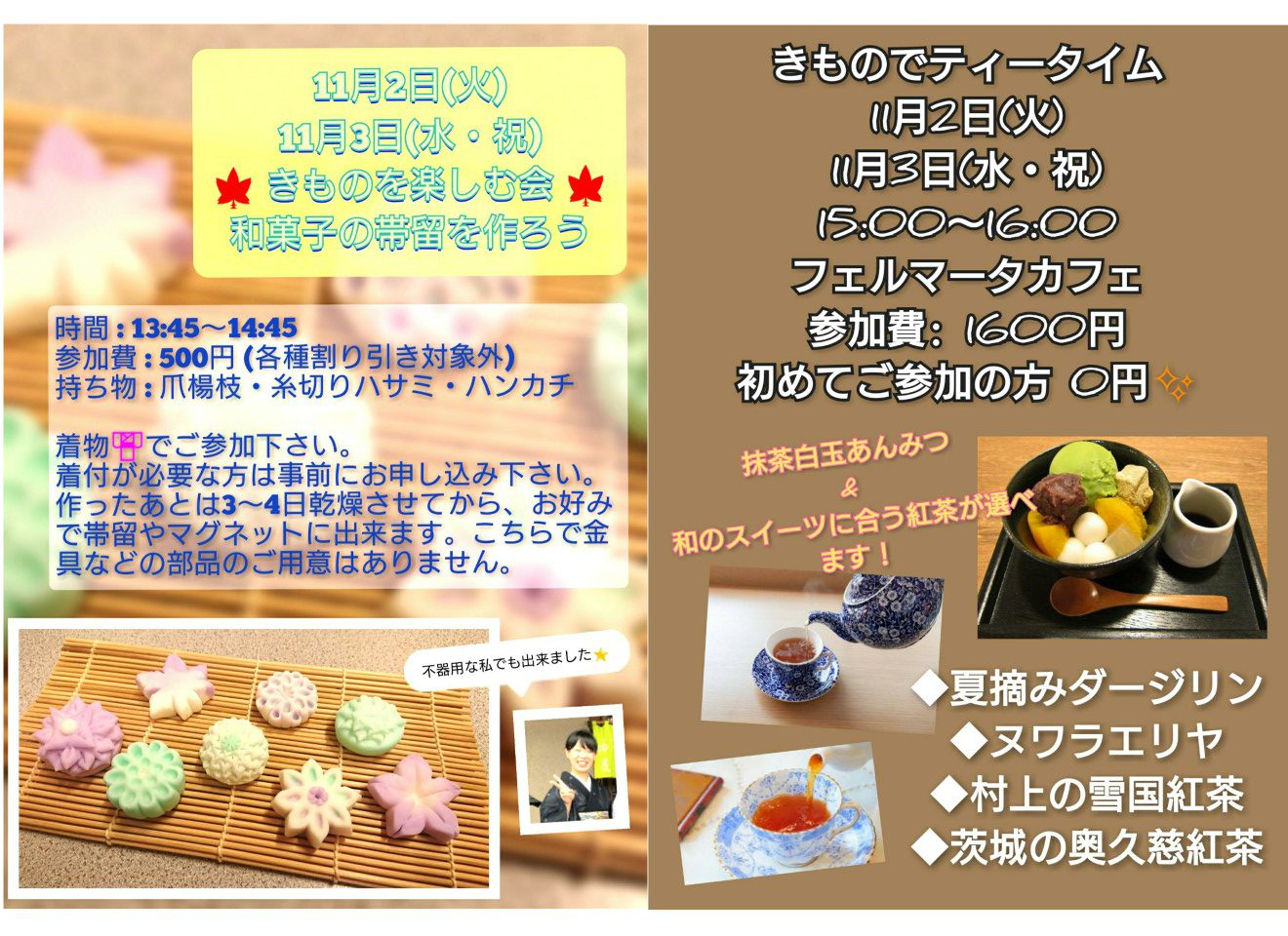 前回お知らせした11月の着物を楽しむ会の詳細です!