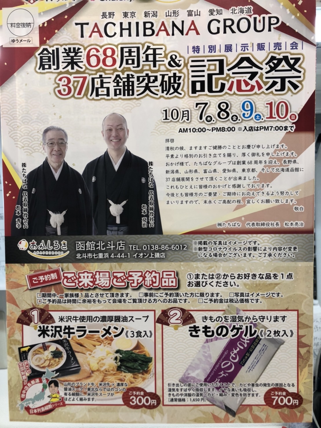 10月のイベント告知です。10月はたちばなグループ創業68周年&37店舗突破記念祭を開催予定です!