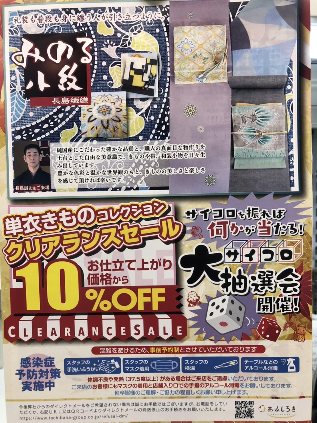 会社をあげてのイベントなのでお楽しみ企画として、ハズレなしの「さいころ大抽選会」と単衣きものクリアランスセールを開催します!